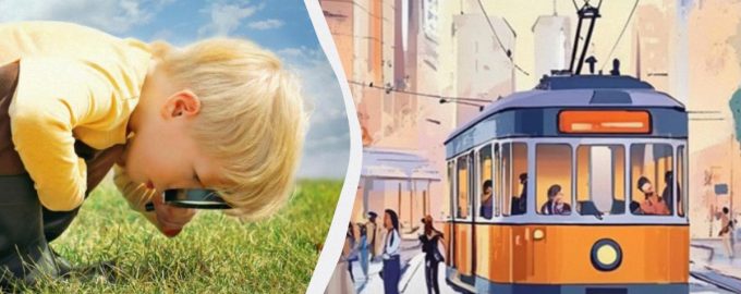 Paveikslėlyje pavaizduota judri gatvė, kuria eina žmonės ir važiuoja paprastas tramvajus. Turite nustatyti laikmatį penkioms sekundėms ir spėti surasti klaidą, kol laikas nesibaigė. Ar pasiruošę?
