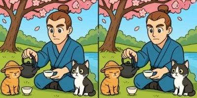 Taigi, pasiruošę kitam iššūkiui? Atidžiai įsižiūrėkite į du paveikslėlius, kuriuose pavaizduotas sode arbatą geriantis vyras su katėmis. Jie gali atrodyti visiškai vienodi, bet neapsigaukite. Jūsų laukia trys paslėpti skirtumai. Apsisukimas tas, kad visiems jiems surasti turite tik 51 sekundę.
