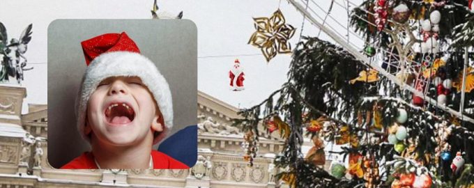 Žemiau pateikta didingos Kalėdų eglutės, papuoštos įvairiais žaisliukais, nuotrauka. Fotografo objektyvas užfiksavo girliandas, saldainių ir žvaigždžių pavidalo dekoracijas, taip pat 11 mažų Kalėdų Senelio figūrėlių.