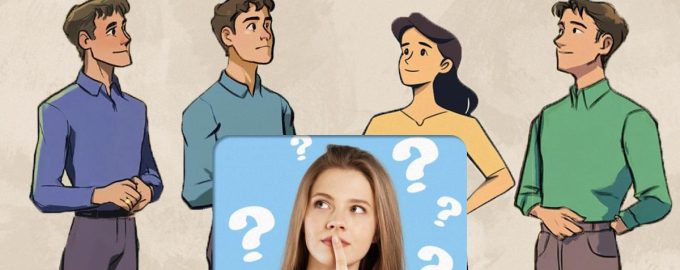 Pasiruošę? Toliau matysite moters ir trijų vyrų paveikslėlį. Turite nustatyti, kieno žmona yra moteris geltona palaidine.