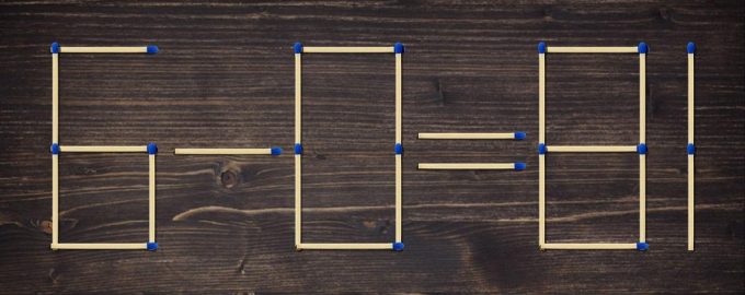 Šiame galvosūkyje reikia sukeisti du degtukus vietomis, kad lygtis būtų teisinga. Matchbox galvosūkiai su atsakymais / Moje nuotrauka Dėlionės su degtukais